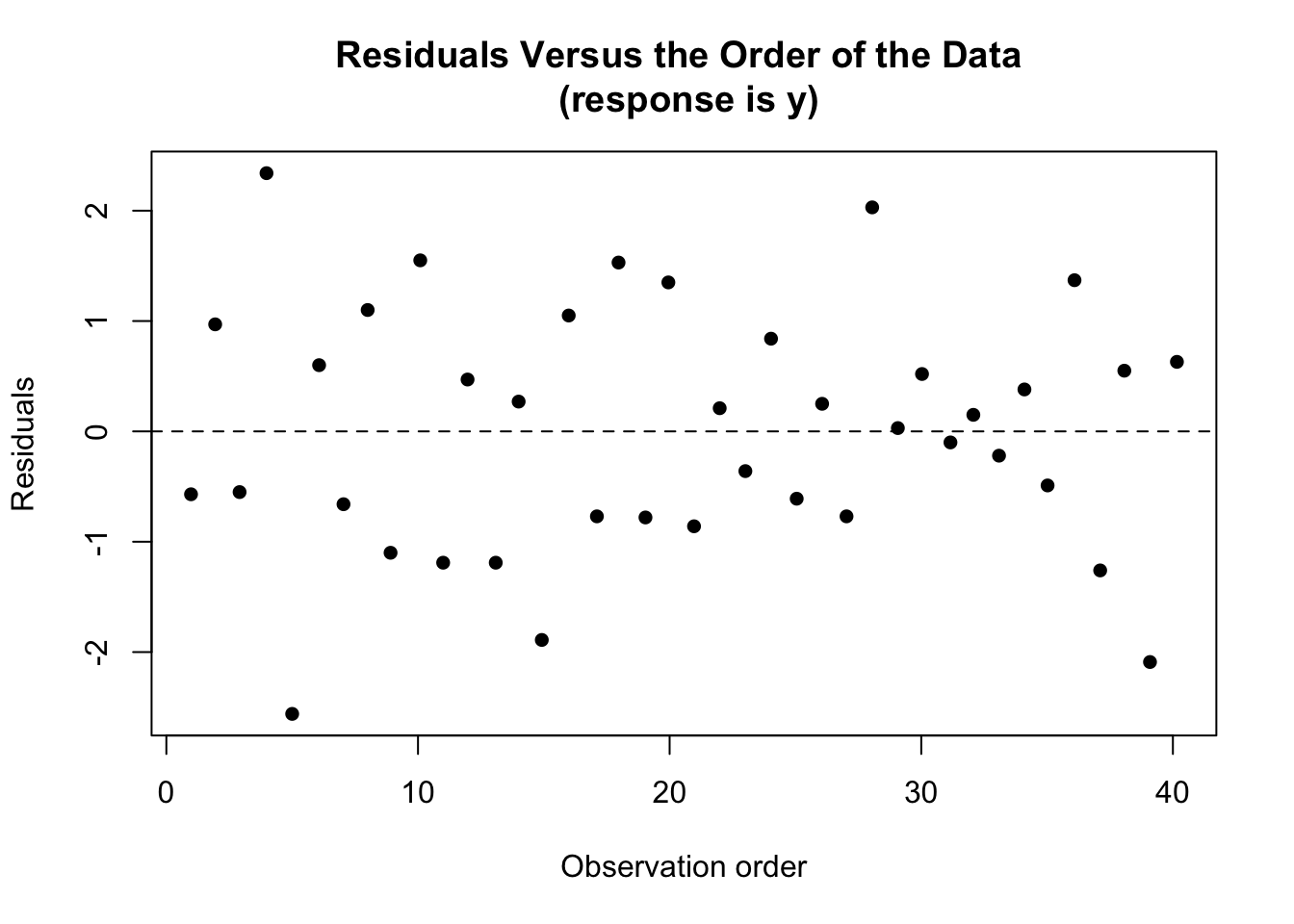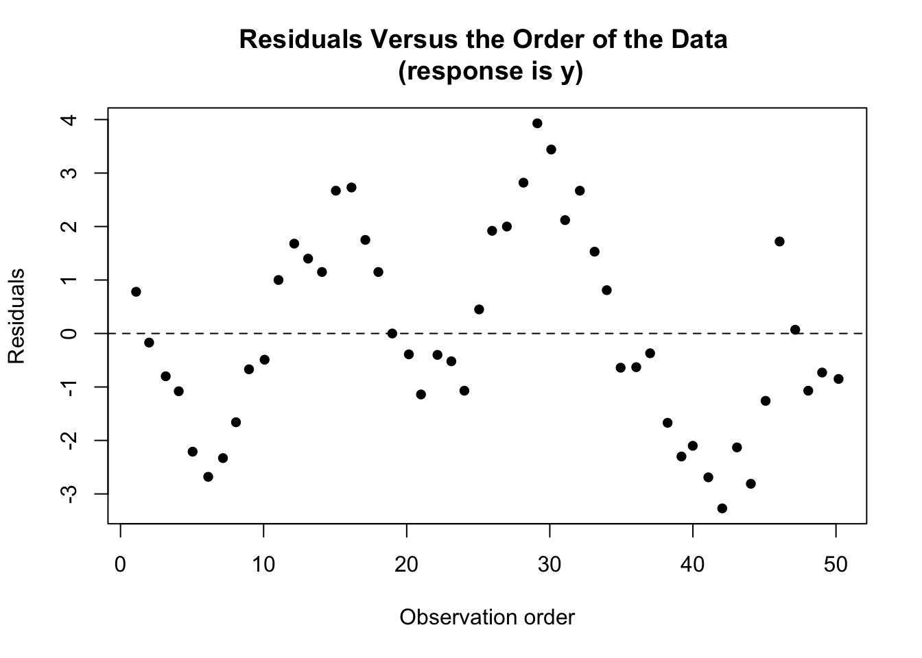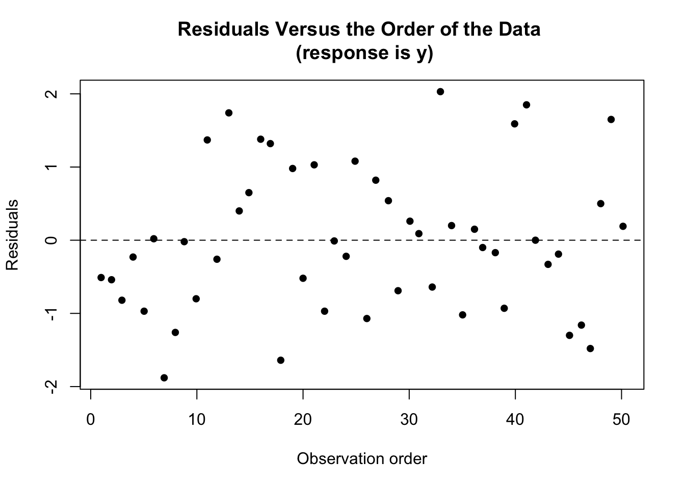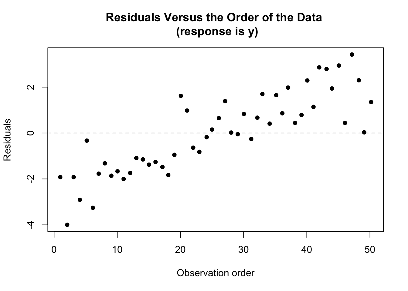 - Know how we can detect a certain kind of dependent error terms using residuals vs. order plots.