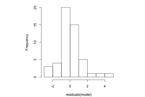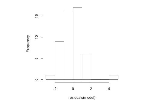 hist(residuals(model), main="", breaks=12)