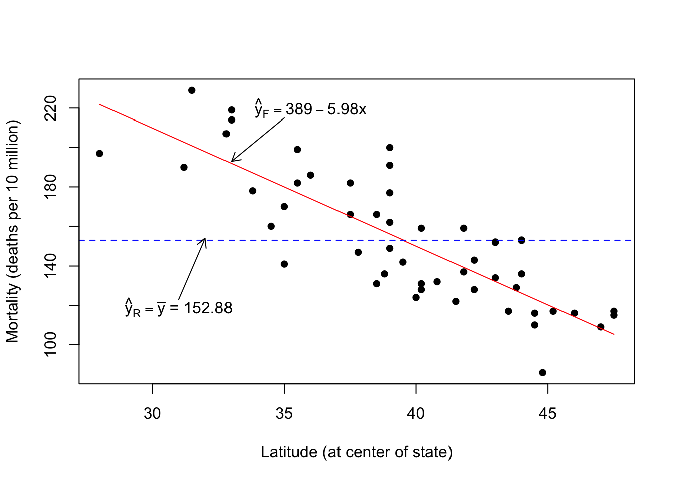 And, here’s another plot of a hypothesized full model that we previously encountered (state latitudes and skin cancer mortalities):