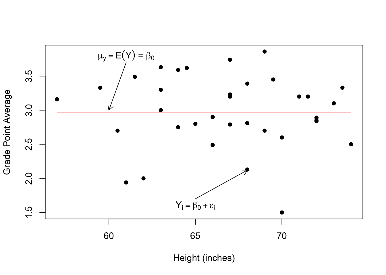 Here’s a plot of a hypothesized full model for a set of data that we worked with previously in this course (student heights and grade point averages):