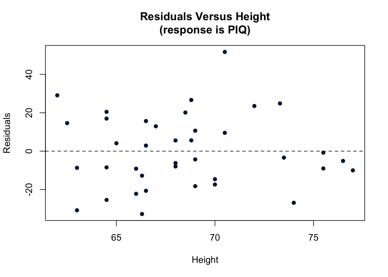 - Fit a multiple linear regression model of PIQ on Brain and Height.