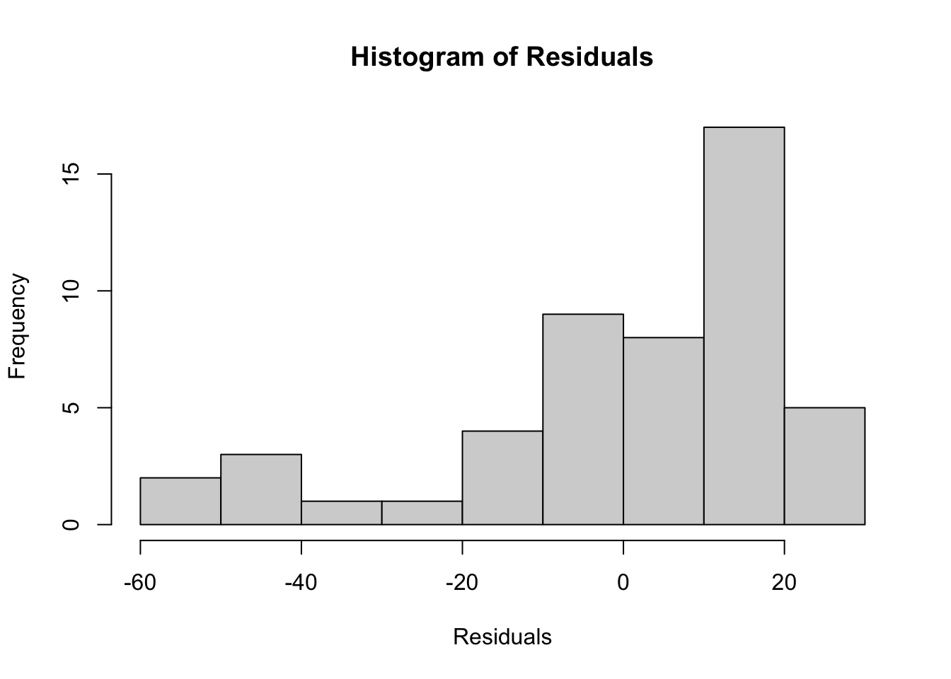 nortestpackage. - Create a log(Diam) variable and fit a simple linear regression model of Vol on log(Diam).