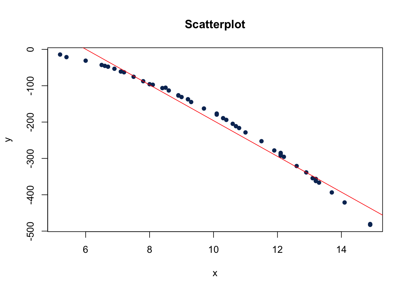 - Display a scatterplot of the data and add the simple linear regression line.
