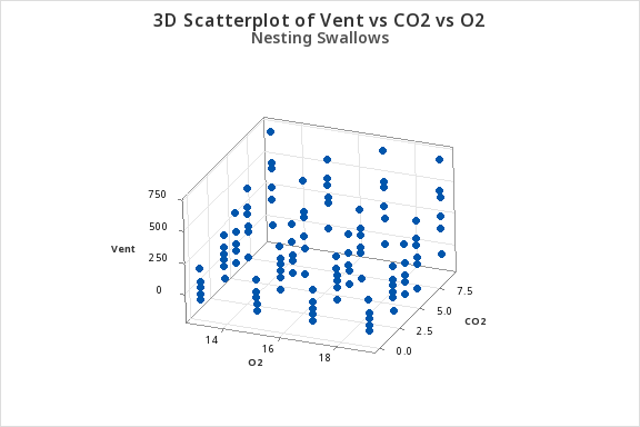 scatter3d(Vent ~ O2 + CO2, subset=Type==0) # nestling
