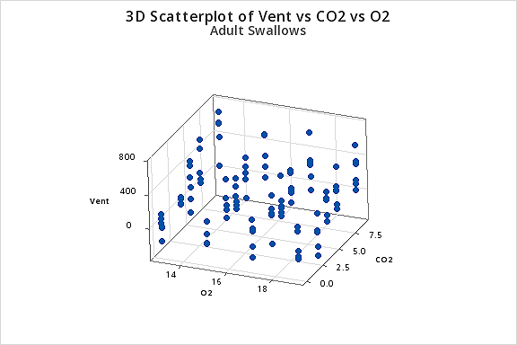 carpackage to access 3D scatterplots. - Create interaction variables and fit a multiple linear regression model of Vent on O2 + CO2 + Type + TypeO2 + TypeCO2 + CO2O2.