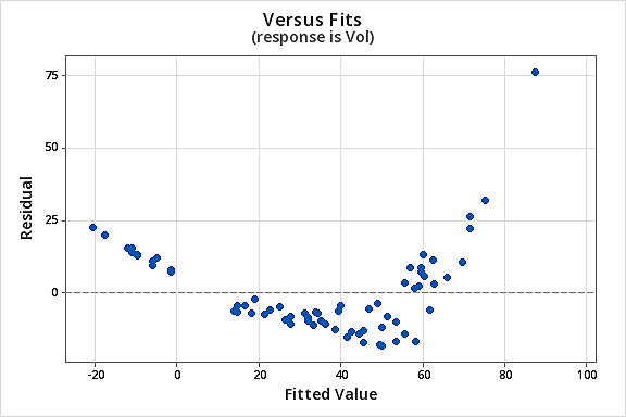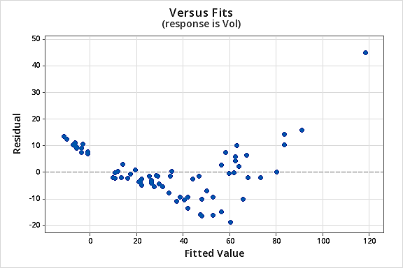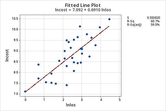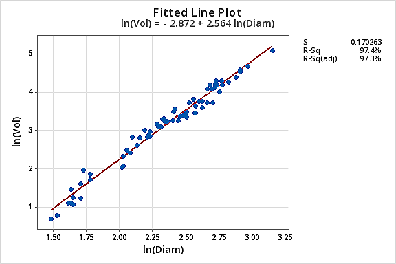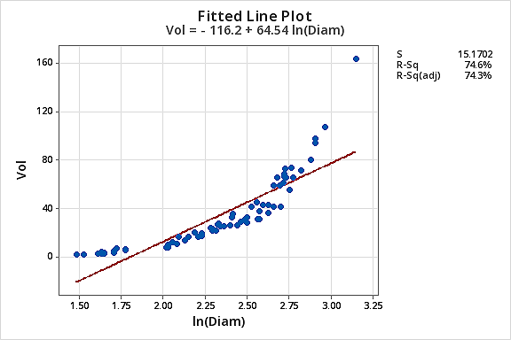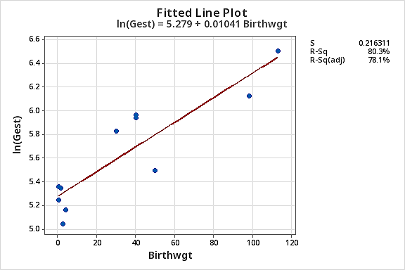 The resulting fitted line plot suggests that taking the natural logarithm of the predictor values is helpful.