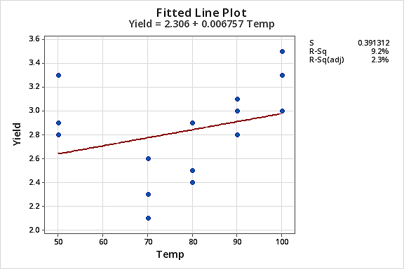 - Fit a simple linear regression model of Yield on Temp.