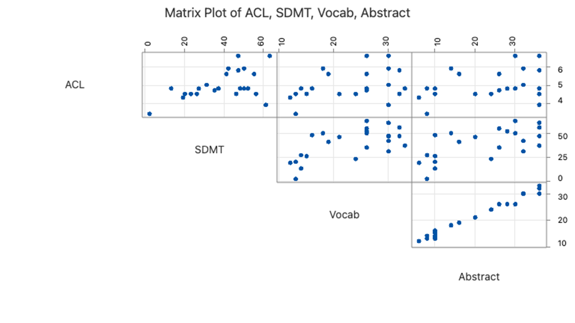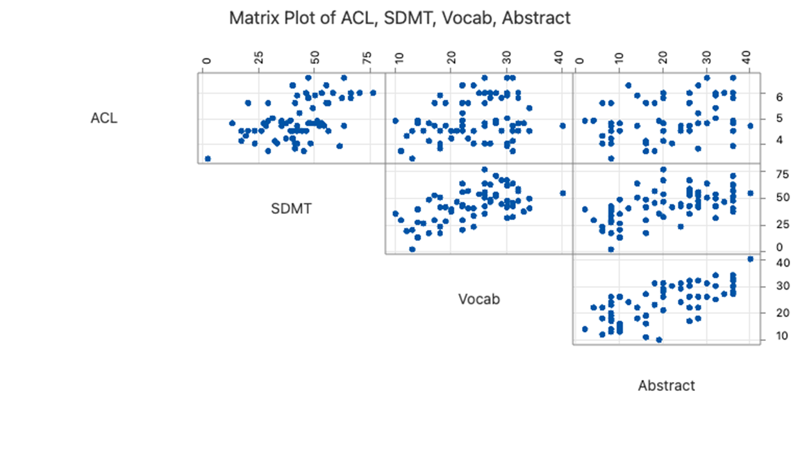 - Fit a multiple linear regression model of ACL vs SDMT + Vocab + Abstract.