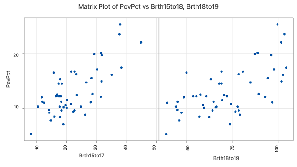 - Fit a multiple linear regression model of PovPct vs Brth15to17 + Brth18to19.
